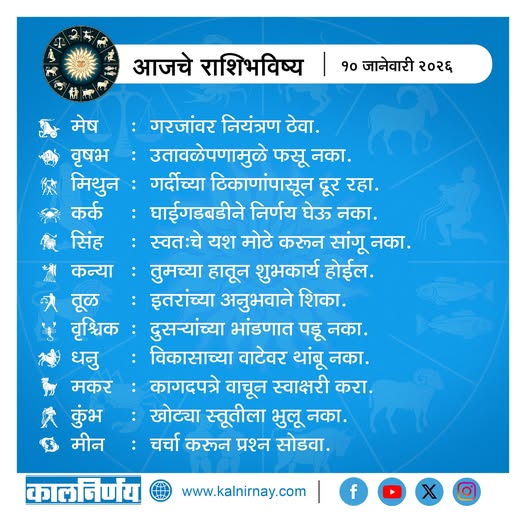 10 January 2026 Horoscope / १० जानेवारी २०२६ राशि भविष्य