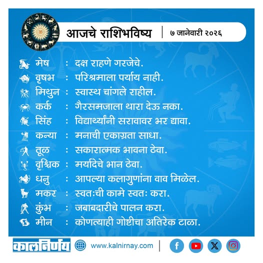7 January 2026 Horoscope / ७ जानेवारी २०२६ राशि भविष्य