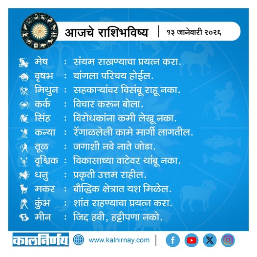 13 January 2026 Horoscope / १३ जानेवारी २०२६ राशि भविष्य