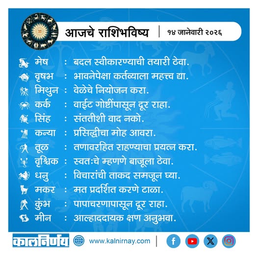 14 January 2026 Horoscope / १४ जानेवारी २०२६ राशि भविष्य