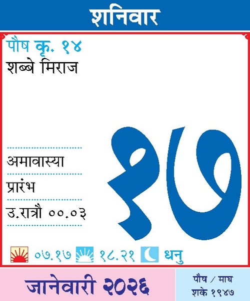 January 17, 2026Saturday– Shab-e-Miraj | Amavasya | Begins at 00:03 AM