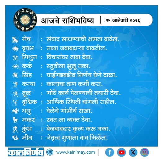 15 January 2026 Horoscope / १५ जानेवारी २०२६ राशि भविष्य