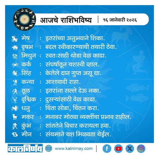 16 January 2026 Horoscope / १६ जानेवारी २०२६ राशि भविष्य