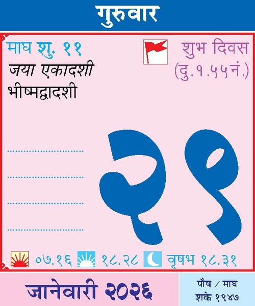January 26, 2026Monday– Bhishmashtami / Republic Day / Durgashtami / Bendoji Baba Yatra – Ghuikhed (Amravati) / Bhagwati Yewalekar Swami