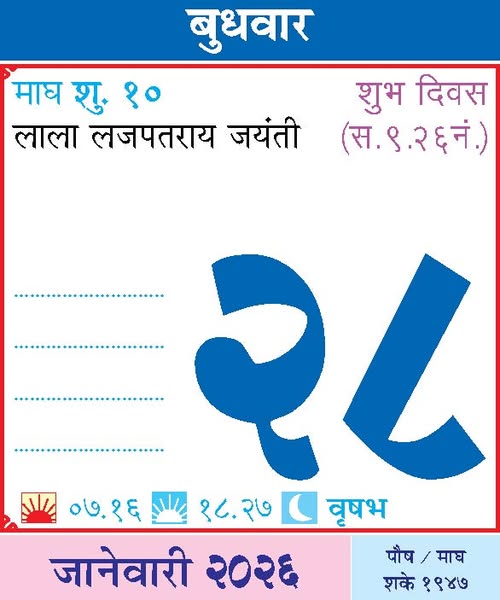 January 28, 2026Wednesday– Lala Lajpat Rai Jayanti / Bhakta Pundalik Festival – Pandharpur