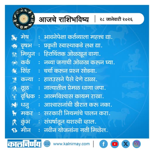28 January 2026 Horoscope / २८ जानेवारी २०२६ राशि भविष्य
