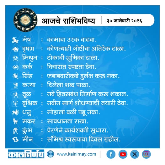 30 January 2026 Horoscope / ३० जानेवारी २०२६ राशि भविष्य