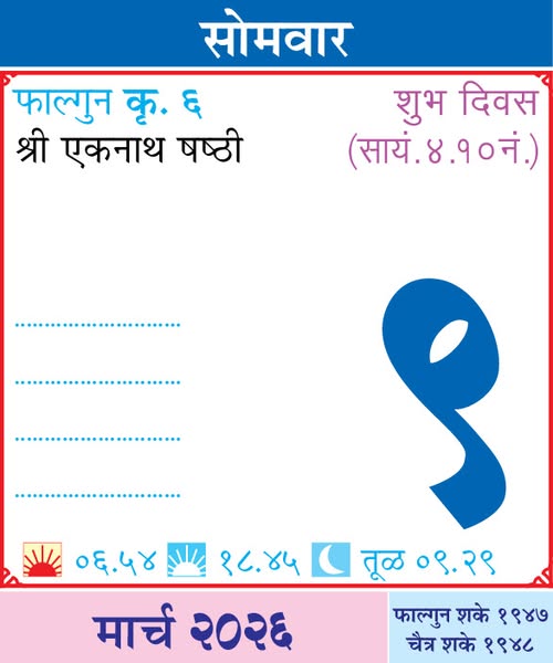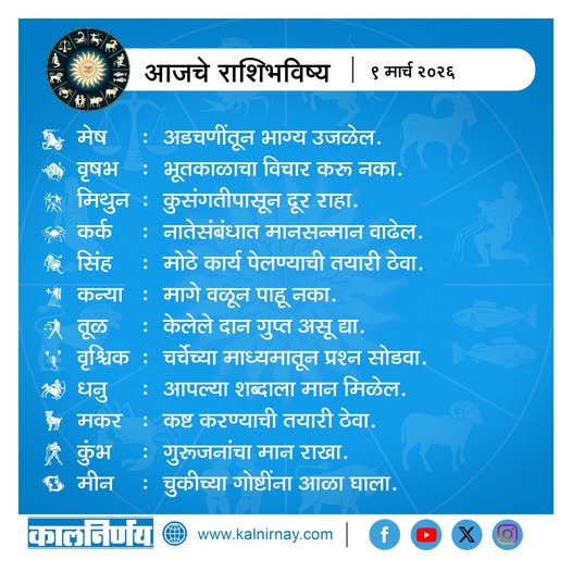 9 March 2026 Horoscope / ९ मार्च २०२६ राशि भविष्य