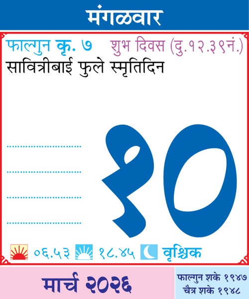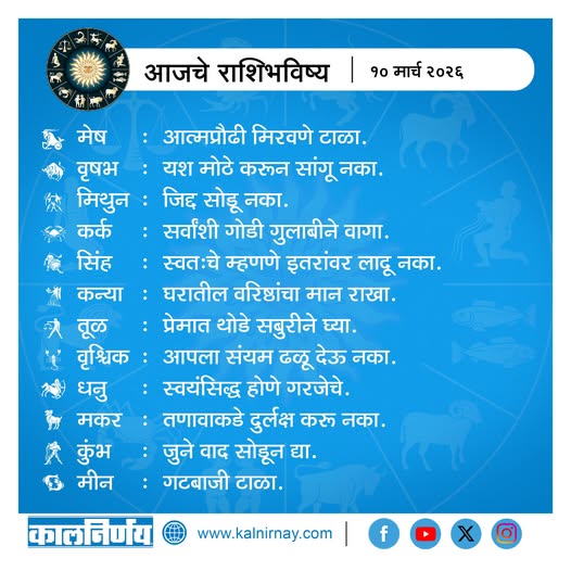 10 March 2026 Horoscope / १० मार्च २०२६ राशि भविष्य