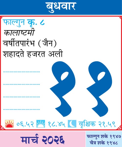 11 March 2026 ‘About this day’ / ११ मार्च २०२६ दिनविशेष