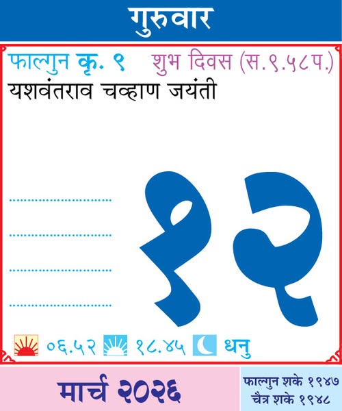 Kalnirnay Calender March 2026 / कालनिर्णय मार्च २०२६ कॅलेंडर
