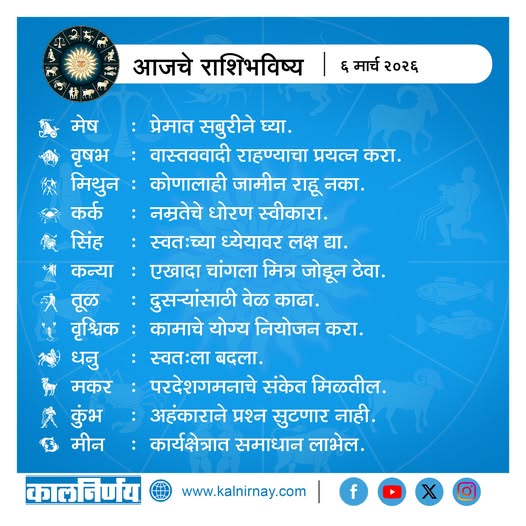 6 March 2026 Horoscope / ६ मार्च २०२६ राशि भविष्य