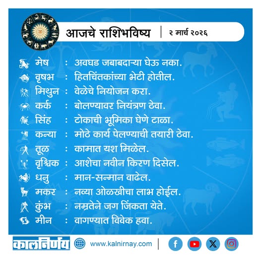 2 March 2026 Horoscope / २ मार्च २०२६ राशि भविष्य