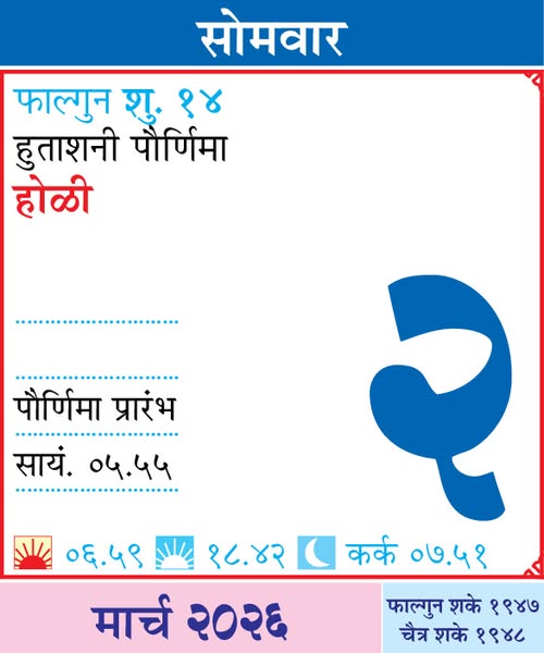 Kalnirnay Calender March 2026 / कालनिर्णय मार्च २०२६ कॅलेंडर