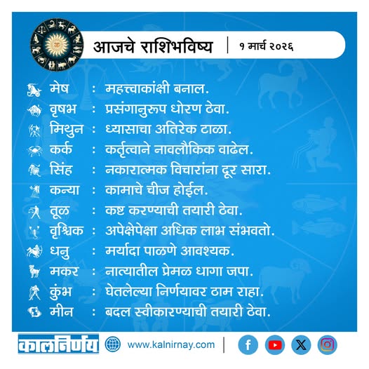 1 March 2026 Horoscope / १ मार्च २०२६ राशि भविष्य